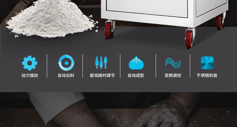 ◆ 生產(chǎn)品種多樣化,可生產(chǎn)各種不同餡料的包子,廣泛用于個(gè)體戶、速凍食品廠、學(xué)校等單位??蓾M足不同客戶群體。