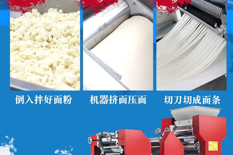 MT5-250面條機(jī) (掛面機(jī)或濕面機(jī)) | 外形尺寸:2300×600×1400mm 產(chǎn)量:200kg/h 軋輥:98×260mm 功率:3kw 軋輥組數(shù):5組 機(jī)重:450kg | 鐵外殼 |