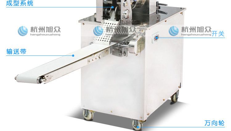旭眾牌JGB-120-5A型輸送帶餃子機是一款可生產(chǎn)各種肉餡、肉菜混合餡、全菜餡及其它種餡餃子的設(shè)備。完美的設(shè)計,兼顧衛(wèi)生與美觀兩大優(yōu)點,并且拆裝容易,清洗簡便。