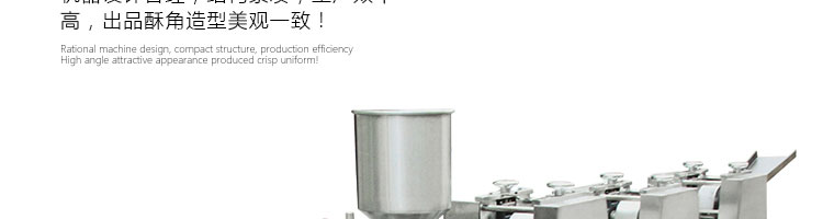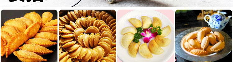 WS-2003 型自動(dòng)成型酥角機(jī)(油餃機(jī)),適用于制作酥角、油餃,可包的餡有:花生、椰蓉、白糖等。適合多種面粉材料、并且成型封口美觀牢固。小模約47mm,大模約57mm隨機(jī)標(biāo)配一套模具。購(gòu)機(jī)贈(zèng)送工藝配方。