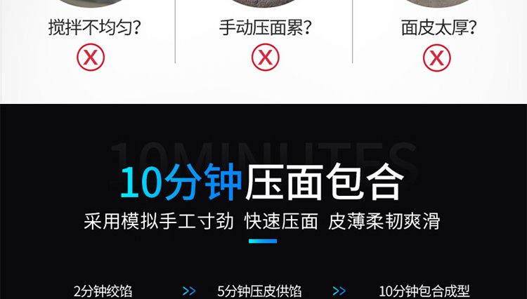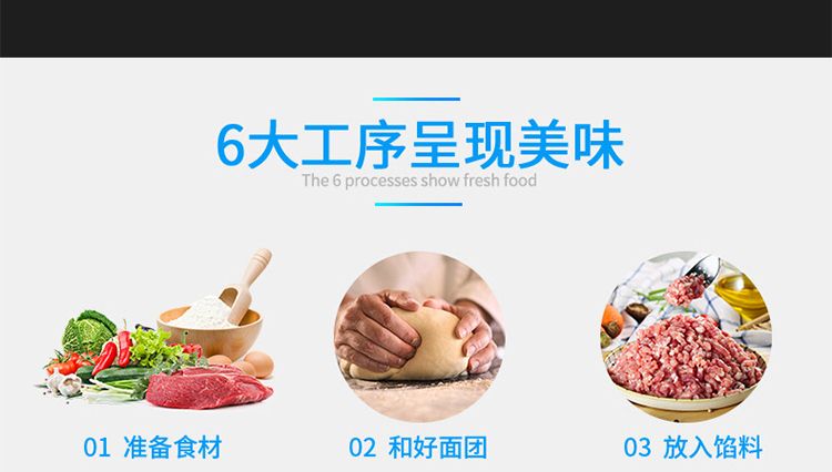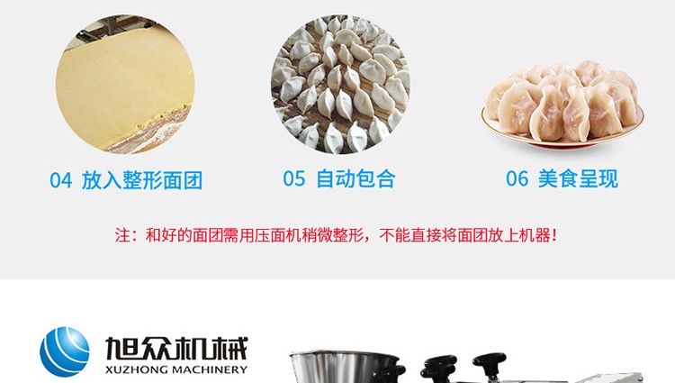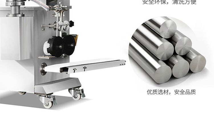?采用多道壓面輥壓面,壓面效果優(yōu)異,壓出的面皮筋道,進(jìn)一步提高所包出的餃子口感。