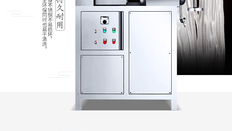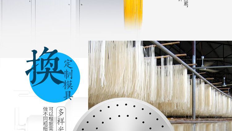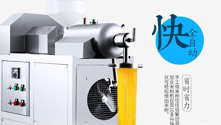 改進(jìn)型米粉、米線專用機(jī),裝有自動溫空裝置,整個生產(chǎn)過程設(shè)備均在恒溫狀態(tài)下運(yùn)行,自動化程度高,操作簡單,l人即可生產(chǎn)。可生產(chǎn)米粉、米線、桂林米粉、過橋米線、年糕等產(chǎn)品。各種形狀都可生產(chǎn)(圓、扁),加工食品外表光滑,厚薄、寬窄、粗細(xì)均勻可調(diào),筋軟適度,有彈性,口感柔軟、味道純正。
