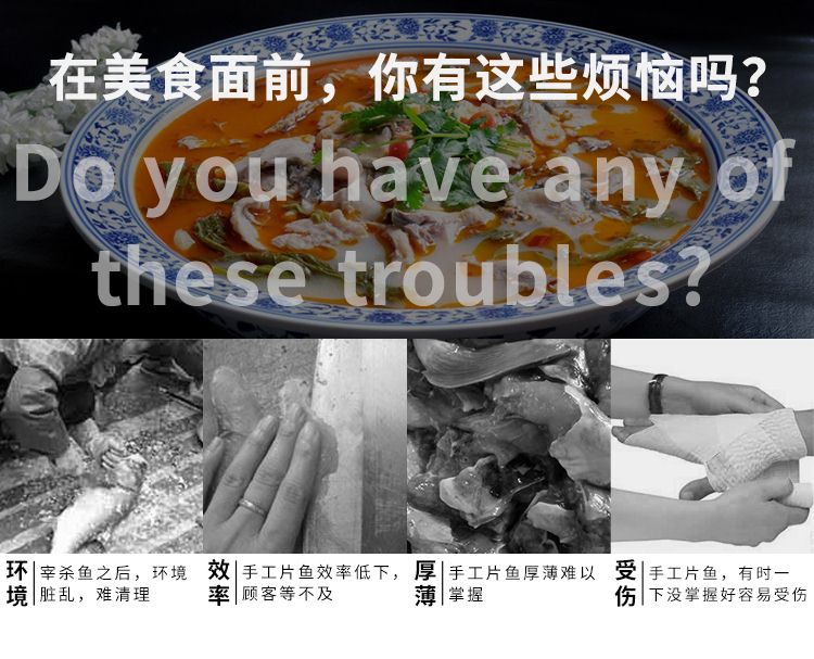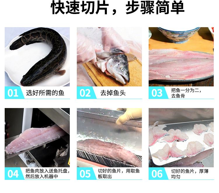 1、魚(yú)片斜切一次成型,可加工大、中、小各種鮮魚(yú)。