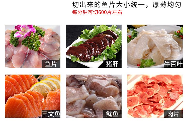 本機(jī)外形美觀、操作簡(jiǎn)單、效率高、耗電小、清潔保養(yǎng)容易、安全衛(wèi)生、切肉效果好等優(yōu)點(diǎn),切鮮魚(yú)機(jī)器其造型美觀、結(jié)構(gòu)緊湊、堅(jiān)固耐用,切魚(yú)片機(jī)器價(jià)格實(shí)惠是賓館、酒家、食堂、肉類加工場(chǎng)等單位所不可缺少的肉類加工機(jī)械