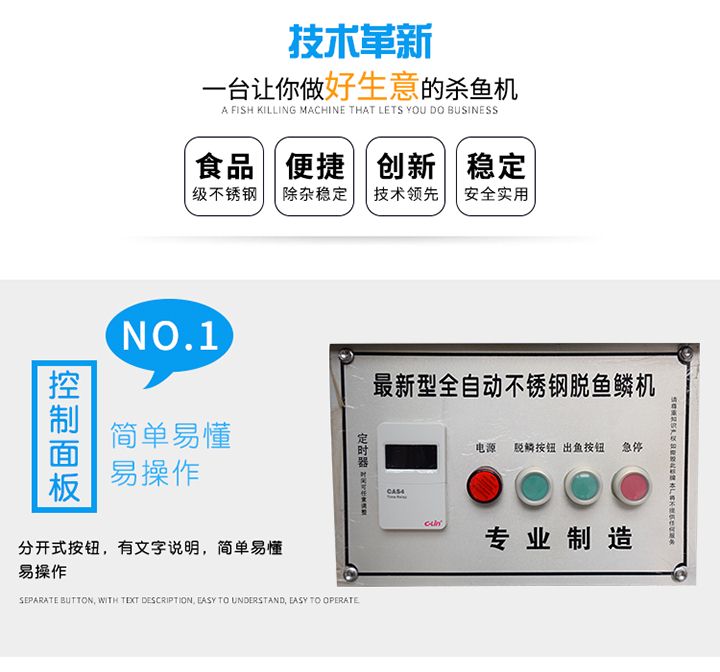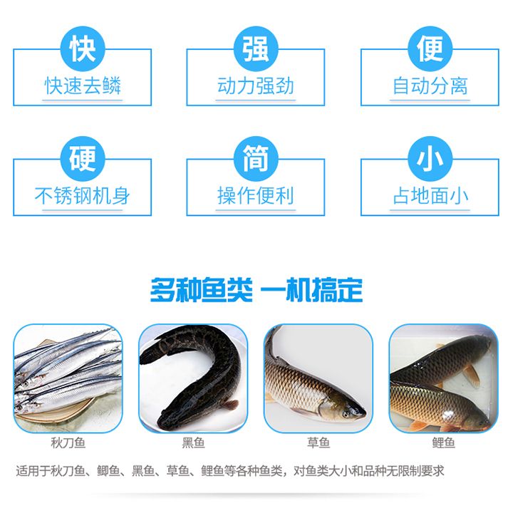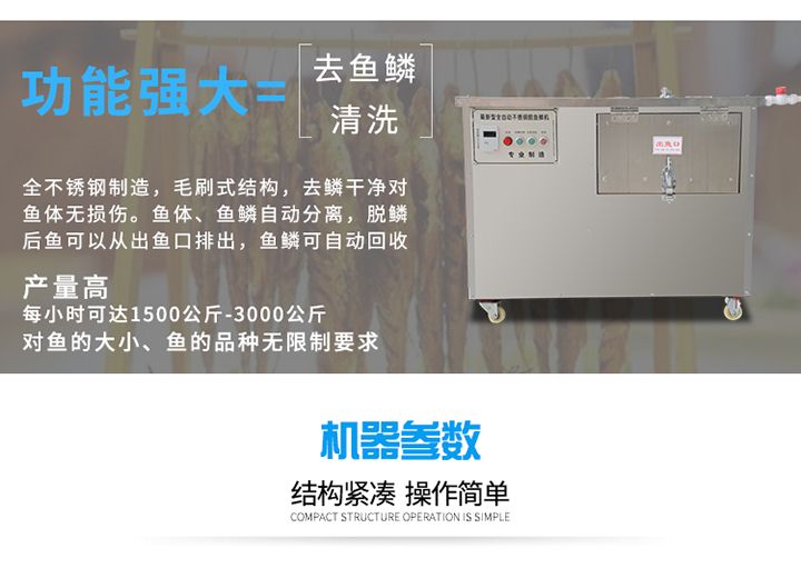 3.功能強大,直接實現(xiàn)去魚鱗和殺魚的工藝,生產(chǎn)效率高,產(chǎn)量大。