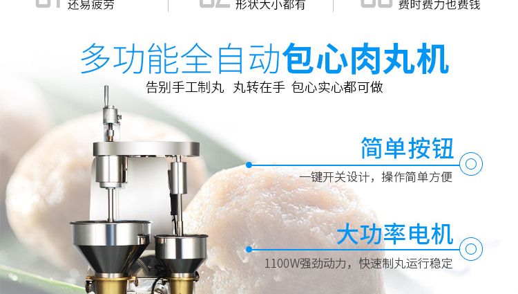 用于制作豬肉丸、魚肉丸、牛肉丸、雞肉丸、貢丸等各種肉丸。