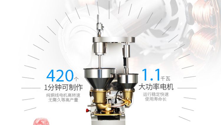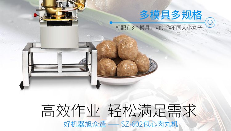 SZ-602包心肉丸機,可生產(chǎn)包心魚丸、包心豬肉丸、撒尿牛肉丸、爆汁小魚丸等多種球形醬湯類包餡產(chǎn)品。操控性強、穩(wěn)定性高、出品率穩(wěn)定;可抽皮增餡,做到皮薄餡多。