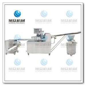 旭眾牌SZ-09A多功能單段酥餅機(jī)是經(jīng)面輪將面皮壓成合適厚度,由自動出餡機(jī)將餡料充填至面皮上,經(jīng)卷面輪將面皮卷成圓柱狀,后以成型刀具切割成球狀,或是長條狀餅胚,再經(jīng)過打餅成形,整個(gè)成形過程不會破壞面皮筋性。