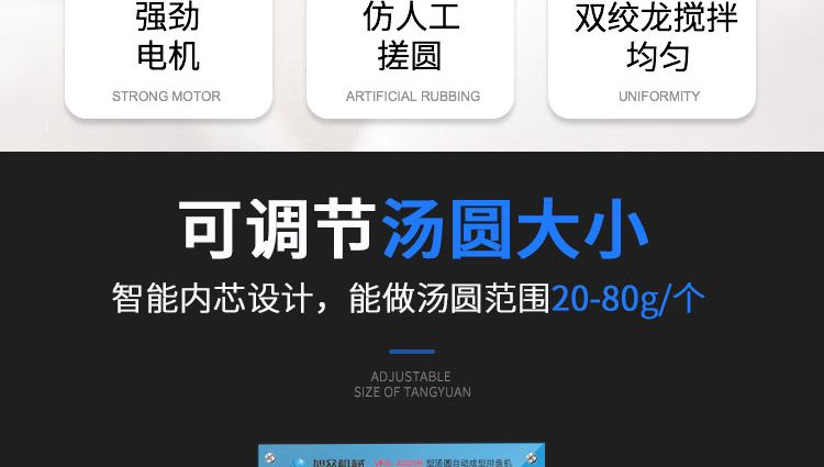 ◆工作效率高,相當(dāng)于20-30個(gè)工人同時(shí)手工制作湯圓,真正的低投入、高收效,省錢省工。