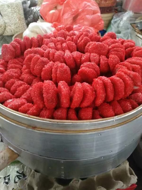 如今食品廠里已經(jīng)開始用旭眾湯圓機(jī)制“楊梅馃”出售,解除了手工制作的勞累,不但口感極好,而且做得如同水果楊梅一般大小,成了名副其實(shí)的“楊梅馃”。鄉(xiāng)間“分喜馃”的習(xí)俗有的也被“喜糖”替代了。