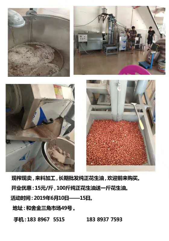 現(xiàn)榨現(xiàn)賣,來料加工,長期批發(fā)純正花生油——購買榨油機加工榨油