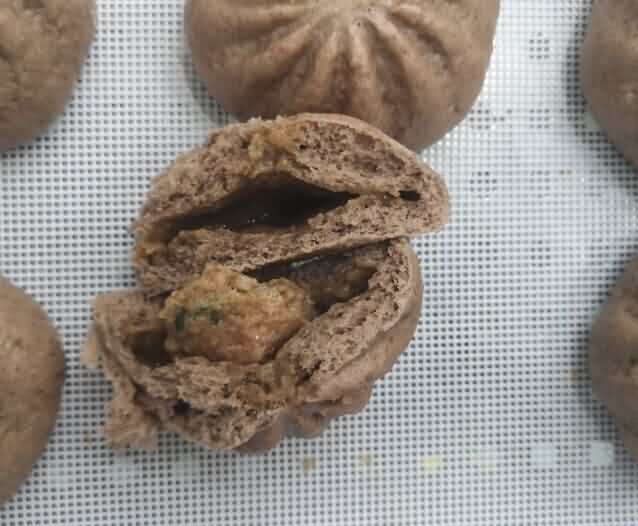 SZ-63包子機(jī)升級(jí)后SZ-612包子機(jī),那么兩者之間區(qū)別在哪里,花紋從九褶變成十二褶,客戶(hù)現(xiàn)場(chǎng)試機(jī)SZ-612包子機(jī)做黑米包效果如圖: