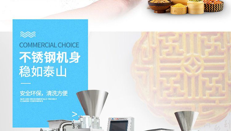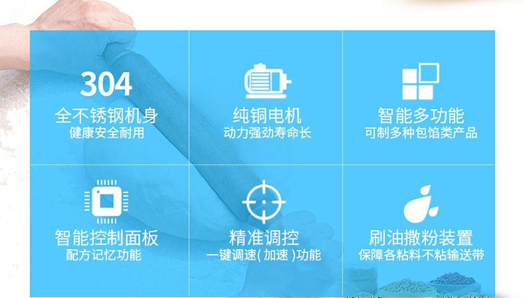 SZ-65型多功能包餡機(jī),可生產(chǎn)豆沙、蓮蓉、五仁餡等較干餡料的包餡類產(chǎn)品,制出的產(chǎn)品餡、皮比例可任意調(diào)整,制品大小統(tǒng)一,外形美觀。
