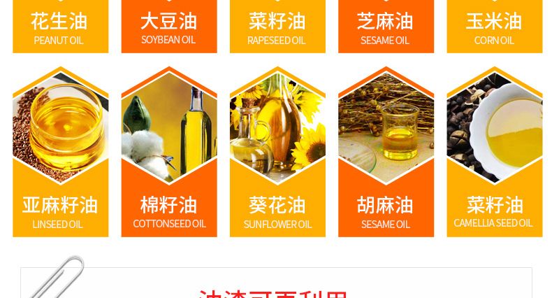 適合壓榨油料 | 芝麻、菜籽、葵花籽、花生、大豆等多種原料 |