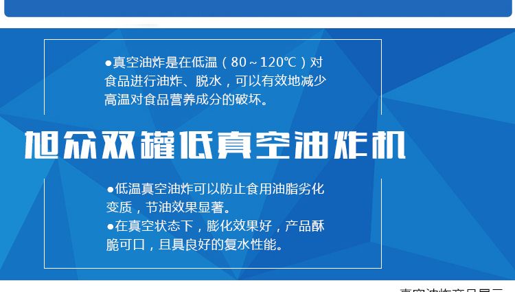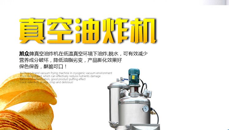 ●真空油炸是在低溫(80~120℃)對食品進行油炸、脫水,可以有效地降低高溫對食品營養(yǎng)成分的破壞。