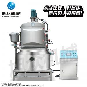 ●降低油脂劣變程度:炸用油的劣化包括氧化、聚合、熱分解,而以水或水蒸汽與油接觸產(chǎn)生水解為主。在真空油炸過程中,油處于負(fù)壓狀態(tài),溶于油脂中的氣體很快大量逸出,產(chǎn)生的水蒸汽壓力較小,而且油炸溫度低,因此,油脂的劣化程度大大降低。