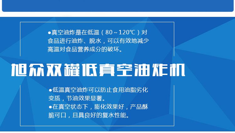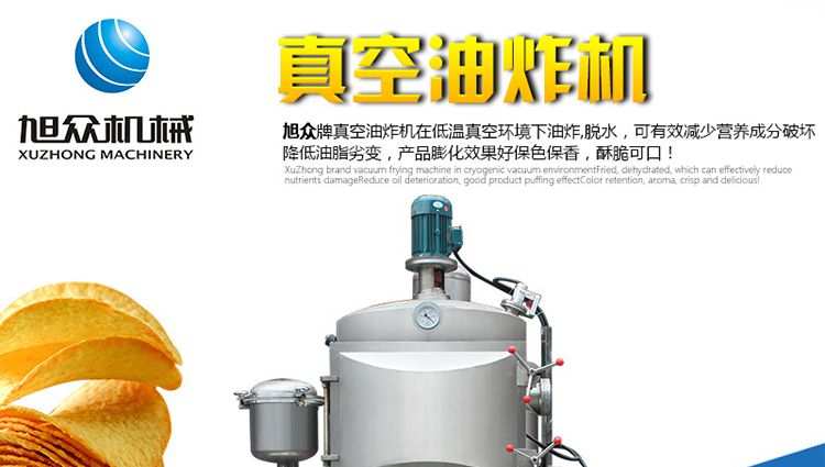 ●真空油炸是在低溫(80~120℃)對(duì)食品進(jìn)行油炸、脫水,可以有效地減少高溫對(duì)食品營養(yǎng)成分的破壞。