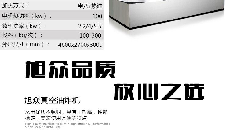 ●雙室采用上下兩個罐,脫油時確保絕對無回油,使含油、含水率低。油炸、脫油、脫水、油過濾一體化設計,在真空下連續(xù)性完成,產(chǎn)品含油量低,產(chǎn)品處于負壓狀態(tài),在這種相對缺氧的條件下進行食品加工,可以減輕甚至避免氧化作用(例如脂肪酸敗、酶促褐變和其他氧化變質(zhì)等)所帶來的危害。在負壓狀態(tài),以油作為傳熱媒介,食品內(nèi)部的水分(自由水和部分結合水)會急劇蒸發(fā)而噴出,使組織形成疏松多孔的結構。